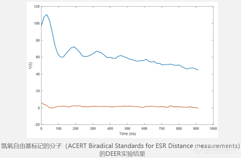 DEER技术研究电子与电子间的相互作用,可用于探测两个顺磁性中心之间的距离。将DEER技术与定点标记(site-directed spin labeling,SDSL)技术相结合,通过测量标记在目标分子上的自旋标记位点之间的距离,可解析生物分子结构及相互作用。因此,DEER技术在结构生物学和聚合物科学中有广泛的应用,如通过距离探测、测量蛋白质-蛋白质、蛋白质-DNA相互作用、底物结合和金属配位位点等。选配DEER系统,使用不同频率的两路微波对系统中的两个电子自旋分别进行脉冲操控,可实现脉冲DEER功能。