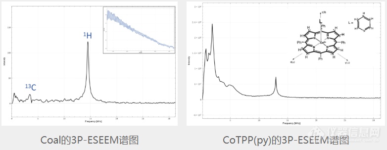 ESEEM(electron spin echo envelope modulation)是一种研究电子和核之间的相互作用的技术,主要探测弱耦合的超精细相互作用和核四极矩相互作用。通过对采集到的时域谱图进行傅里叶变换,可得到频域谱图。根据频率的大小可推断电子周围的原子核的种类。除此之外,还可提供与电子产生相互作用的核的数目。